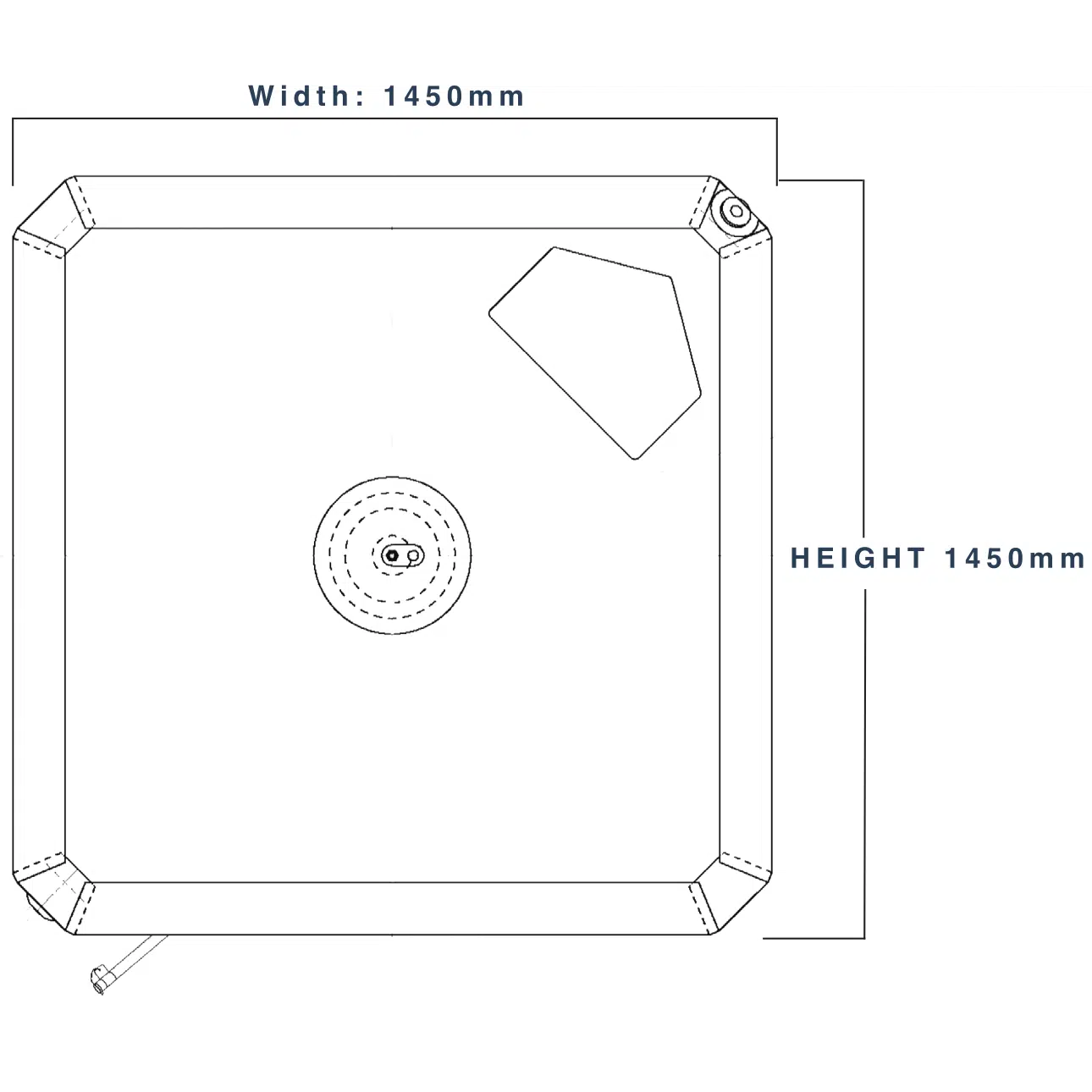 Dimensions: 1.45m x 1.45m x 0.2m